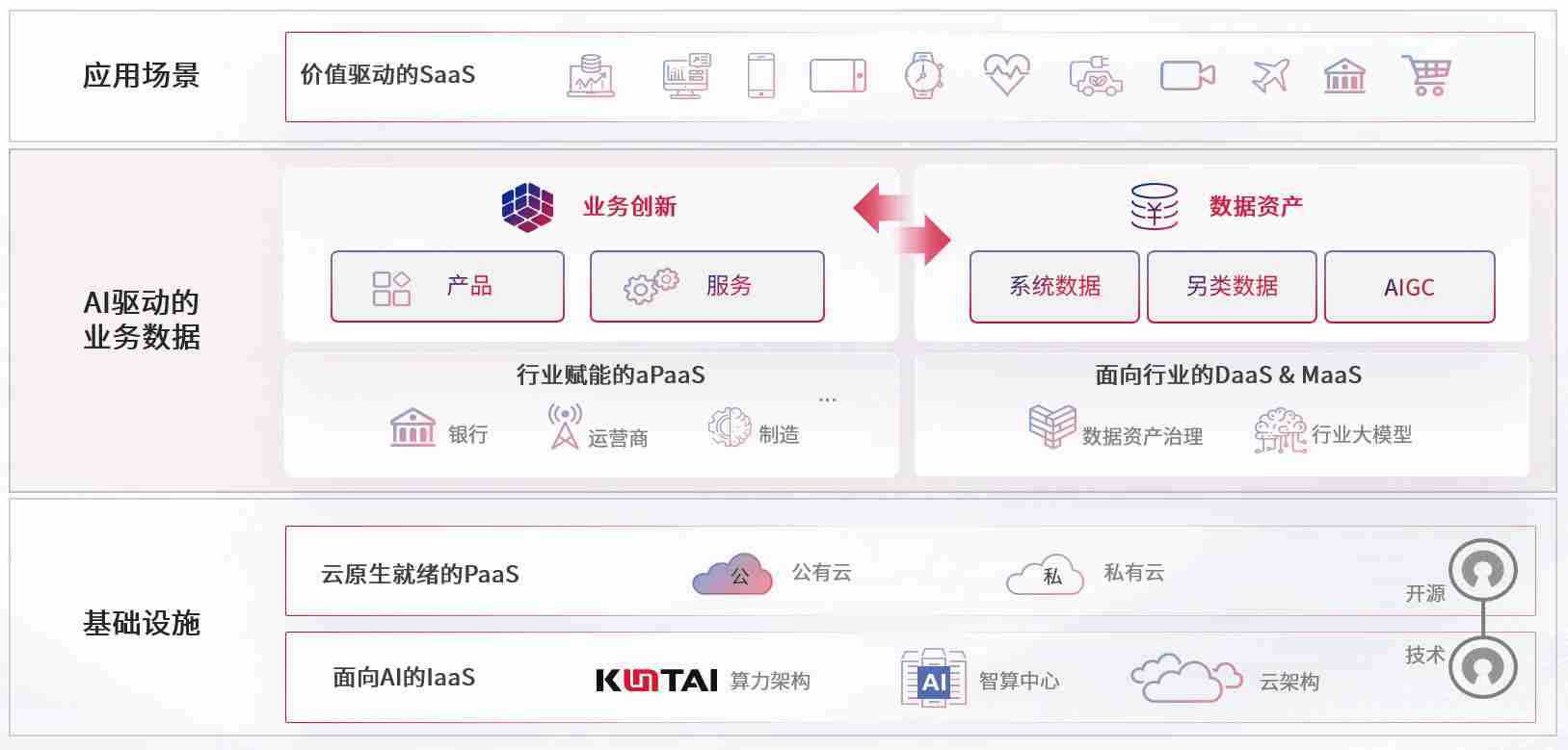 数字时代,,,,围绕企业数字化转型的关键要素,,,,ABPAY钱包数码开创性的提出数云融合战略和技术体系框架,,,着力在云原生、、、、数字原生、、AI原生和信创产业上架构产品和服务能力,,,为处在不同数字化转型阶段的快消零售、、汽车、、、、金融、、、医疗、、、政企、、教育、、、运营商等行业客户提供泛在的敏捷IT能力和融合的数据驱动能力,,构建跨界融合创新的数字业务场景和新业务模式,,助力企业级客户建立面向未来的核心能力和竞争优势,,,全面推动社会的数字化、、智能化转型升级。。。